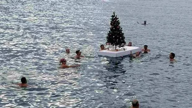 Утром в Пафосе десятки пловцов отметили Новый год в море.