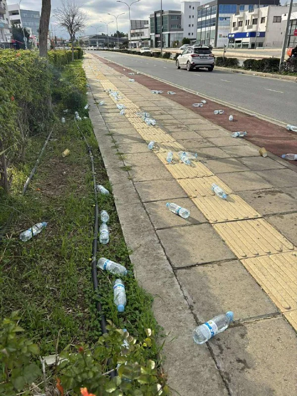 Десятки пластиковых бутылок и мусор были разбросаны по тротуару и велодорожке в Никосии после сегодняшнего марафона. Картина напоминала скорее свалку, чем место для публичных спортивных мероприятий. Впоследствии все было убрано муниципалитетом.