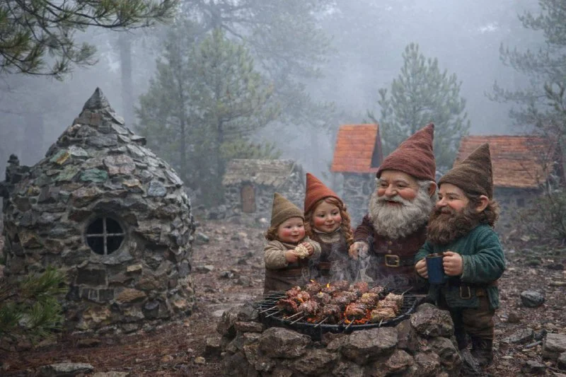 Гномики из Gnomes Hill в Троодосе тоже празднуют Цикнопемпти и жарят сувлу!