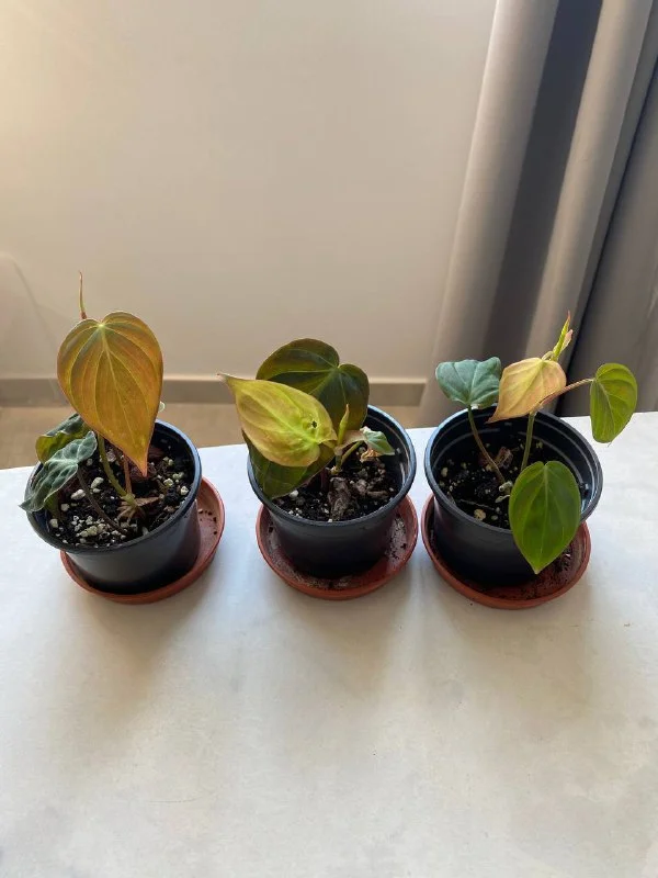 Вот они, 10€, та что справа малютка ещё, живёт пока во влажной теплице, 6€. Все они дети алоказии, которую я приперла из Москвы, она героически дала 4х детей и померла 😬