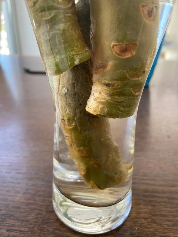 Здравтсвуйте, подскажите, из обрезков - это веточку обрезали и в воду поставили или всё-таки отросток с корнями??