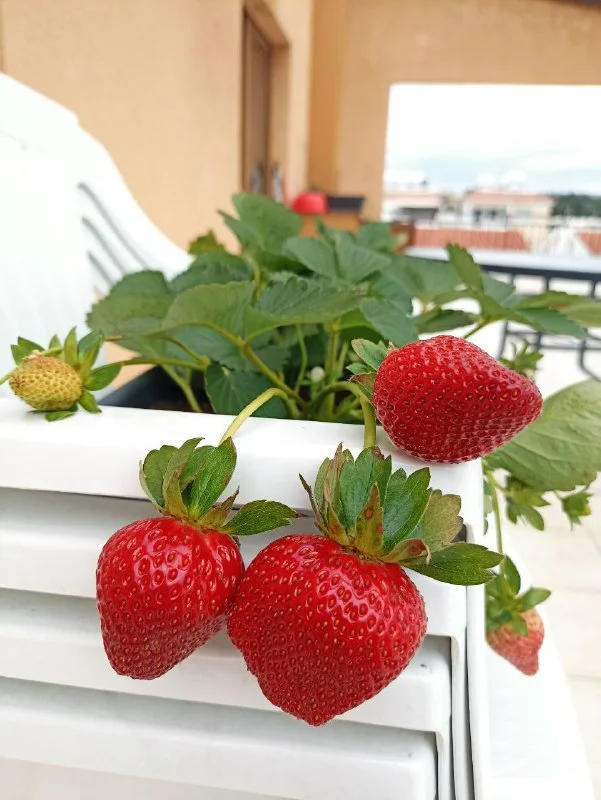 У нас клубничка созрела в горшочке