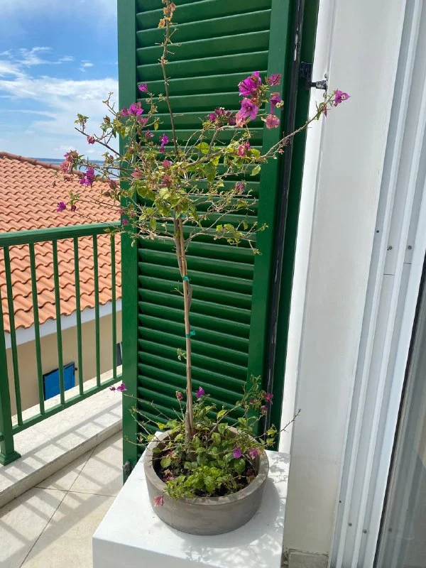 Моя вариегатная бугинвиллия, ей лет 5. Покупала метровую и сразу пересадила в большой горшок.