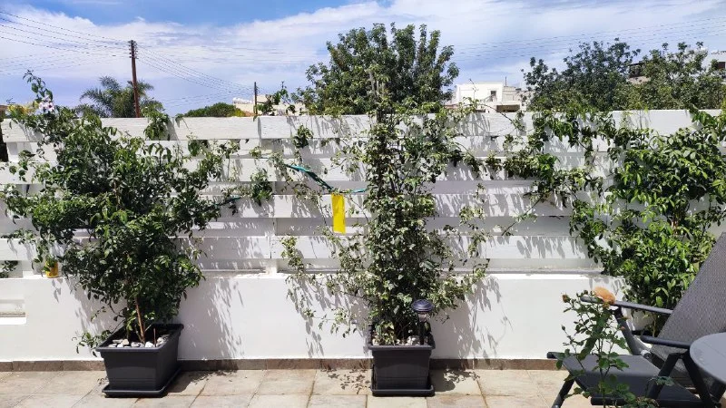 Мы пандорею после покупки распутали и намотали на балконное ограждение. Пока выглядит жиденько, но цветет красиво. Надо было пересадить в горшок побольше, да? 🙈