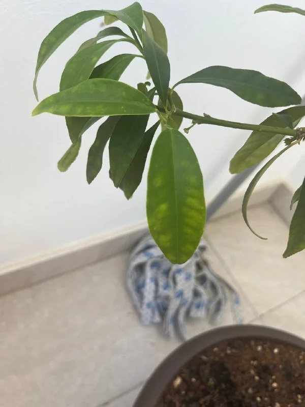Ребят, помогите понять, чего не хватает кумквату? На листьях старых стали появляться пятна(