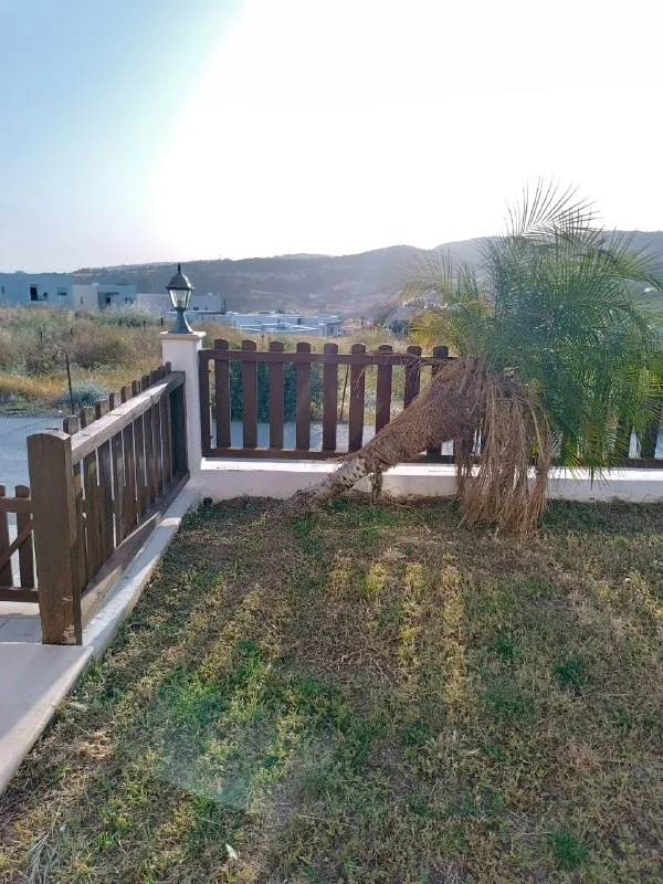 После ливня прилегла пальма. Подскажите, как ее правильно поднять. Можно например подвязать к забору? Или надо пересаживать?
