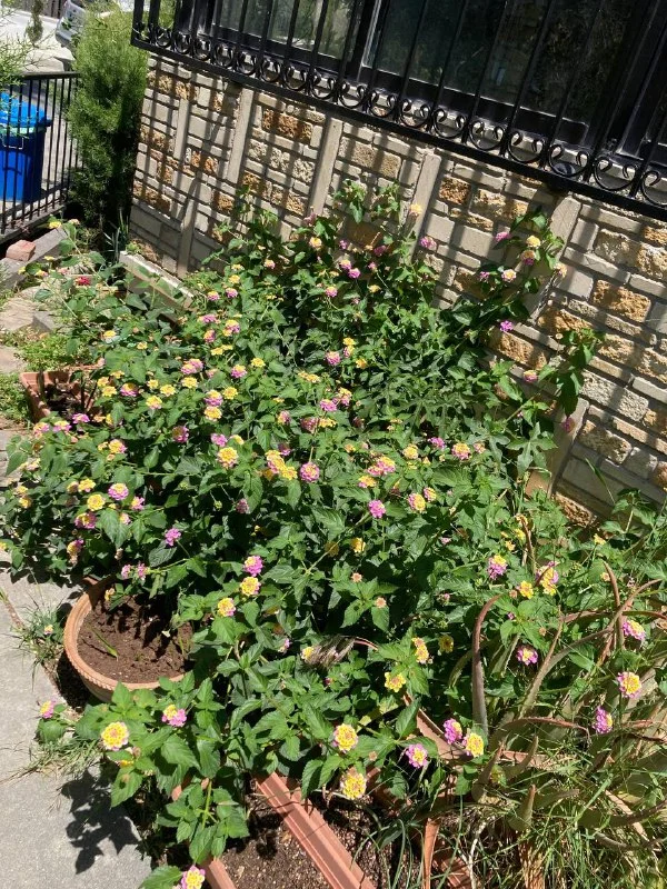 лантана вот разрослась, я в её тень прячу растения помельче, в недрах скрываются папайя и баухиния :-D