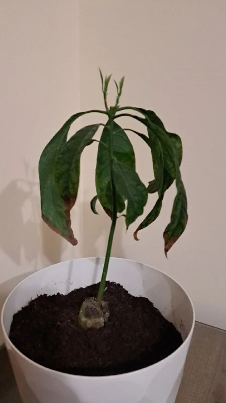 Всем привет хотела рассказать вам всем историю про авокадо. Он растёт у меня пока в горшке, вырастит побольше может пересажу в землю. Выращивают его из косточки. По весне, в марте наверно чихнула ему макушку и он дал 2 веточки, потом сын случайно его задел и верхушки обломил, а там уже листочки разворачивались. Я решила чихнуть ещё разок. И теперь мой авокадо- истеричка. Он сверху выпустил 3 верхушки, и от косточки 2 боковых побега. Единственное что листья по краям сохнут, может кто подскажет что с ним делать чтоб не сох?