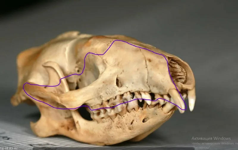 ну меня смущает в оригинальном фото челюстей 2 вещи - дуга кости направленная наверх, у млекопитающи...