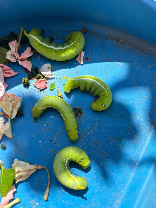 Бражник - огромная гусеница по сравнению с кустом мяты или базилика. Я сильно сомневаюсь, что у вас там бражники. Я думаю, у вас там банальная саранча.
