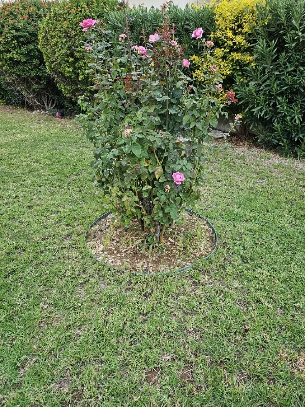 Можно сделать круг из тонкого картона и засыпать мульчей. Или круг из геотекстиля и засыпать мульчой. Можно спИтый кофе и яичные корочки под слой- розы их обажают. И секрет из жаркого Техаса- споласкивать бутыли из под молока и под розы. Они буйствуют