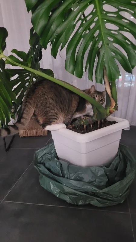 Во избежание таких посягательств я все крупные горшки, куда эти наглые морды могут свои шаловливые ч...