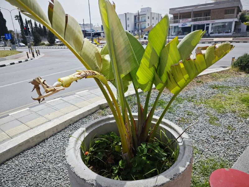 Купила для пробы высокие банановые пальмы, но ветер там их жутко потрепал, пожалела, убрала.