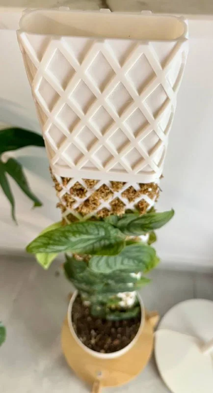 Когда-то я сама делала палки с сетки и мха. И пыталась присобачивать бутылки маленькие с водой, но это все было не то. А тут методом проб и ошибок муж нашел оптимальную систему (как по мне).