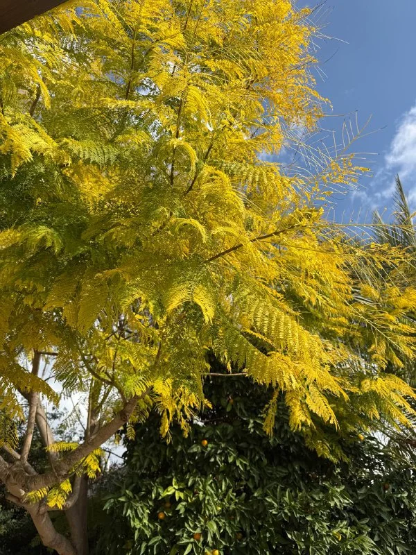 Здравствуйте! Кто-нибудь знает почему наша жакаранда такая желтая большую часть года и не цветет?