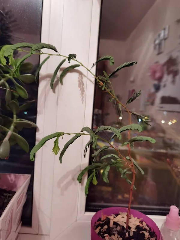 Потом его пересадила в отдельный горшок. Прикольный, на ночь листики закрывает.