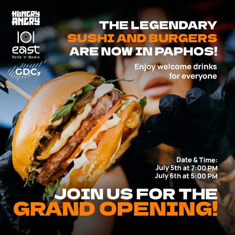We are thrilled to invite you to the summer event — the Grand Opening of East101 and Hungry Angry restaurants in Paphos! 📖