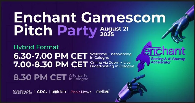 Several strong startups will pitch virtually via Zoom, with a live broadcast from Cologne - August 21.Enchant expert team and industry leaders will provide actionable feedback to help startups refine their projects and scale globally. There would be a great crowd of gaming companies, publishers, and investors watching both online and in person
