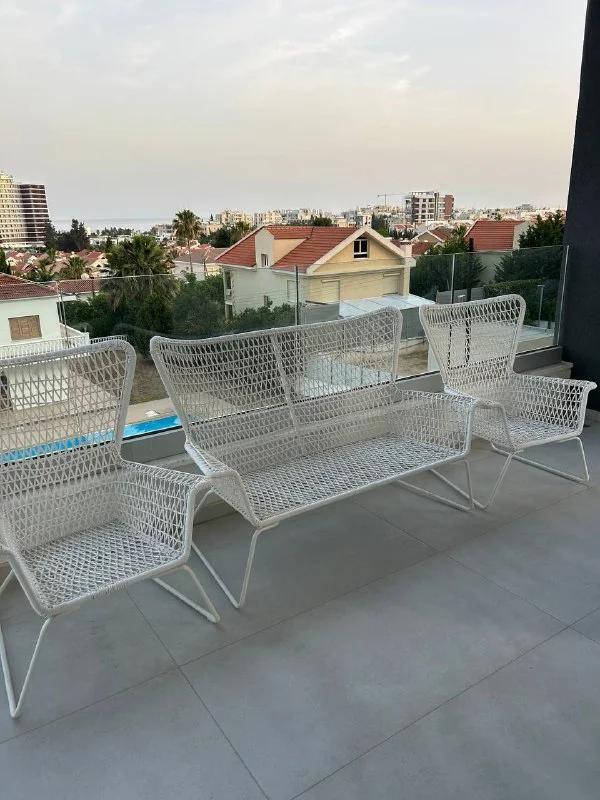 Комплект на улицу: два кресла и двухместный диван. Вместе с подушками - 300 евро.