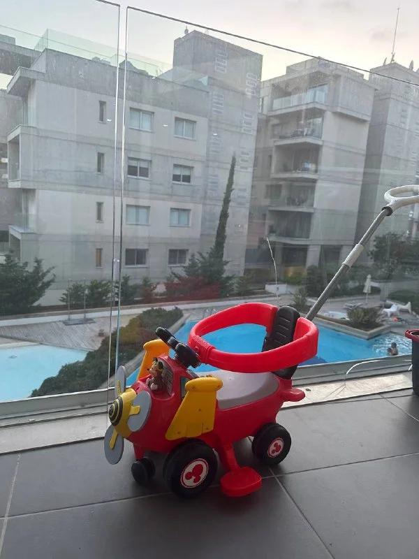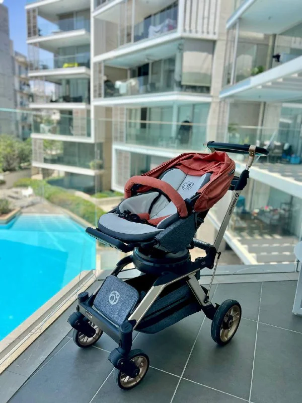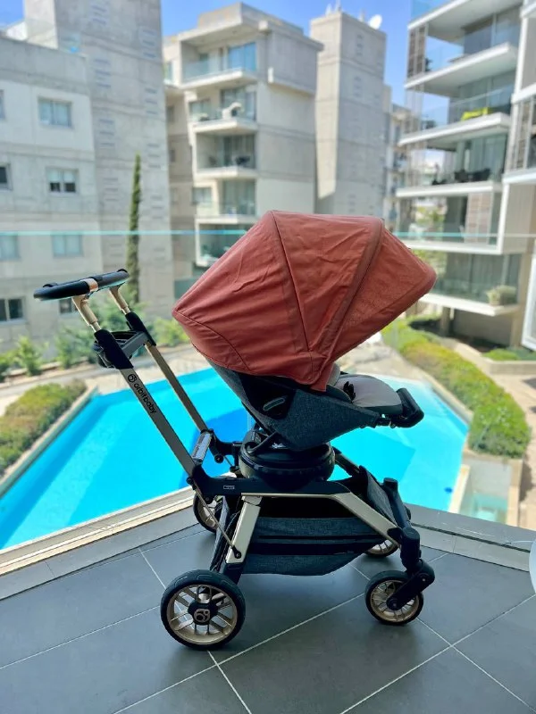 Коляска очень удобная и супер функциональная, блок вращается на 360 градусов, легкая алюминиевая рама, несколько уровней опуска козырька, что супер спасает на кипрском солнце. Очень маневренная.