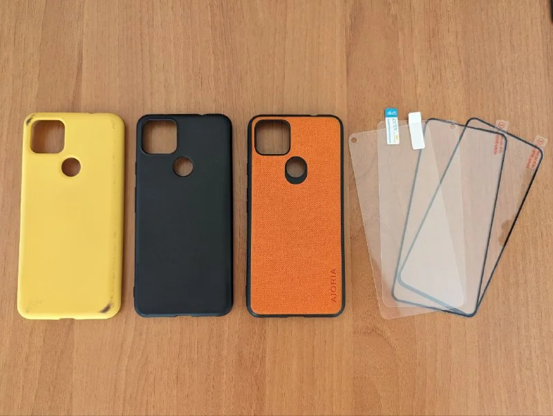 3 чехла и 4 стекла на Google Pixel 5a, оранжевый новый, черный в очень хорошем состоянии, жёлтый немного испачкался, за все 10€ Лимассол