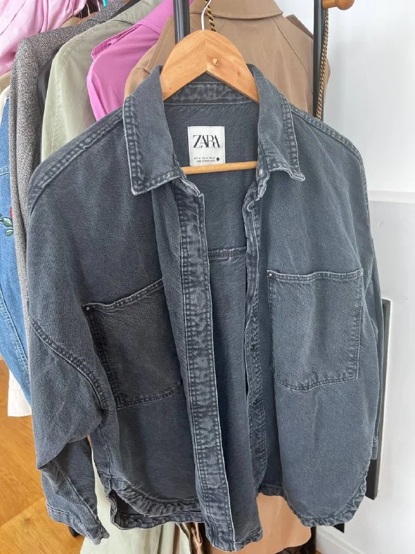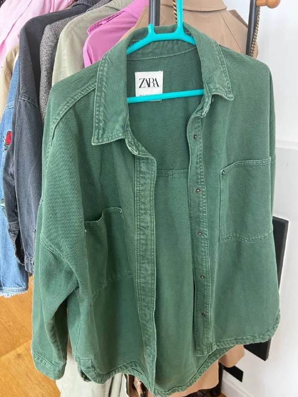 Джинсовая рубашка Zara зеленая xs оверсайс) 15 💶