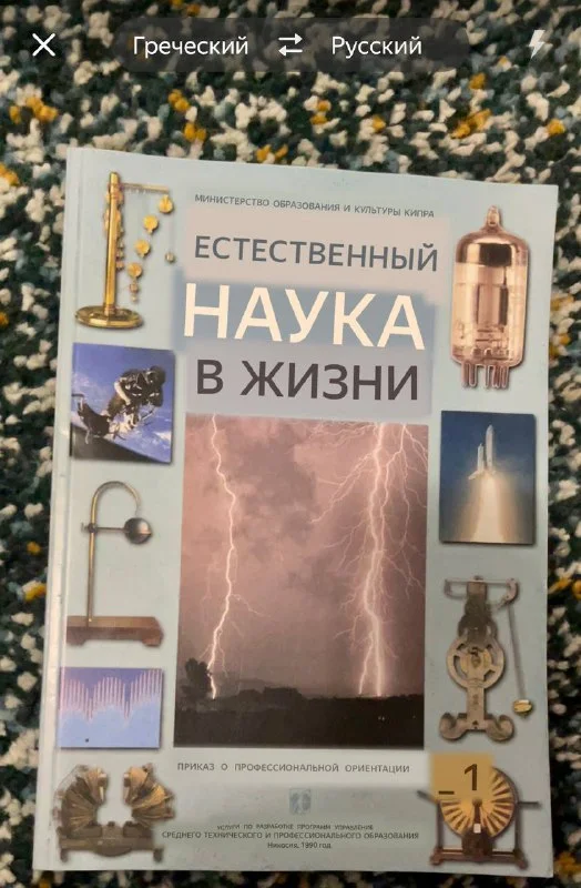 Книга об естественных науках на греческом языке (перевод обложки сделан через программу - поэтому корявый 🙈)
