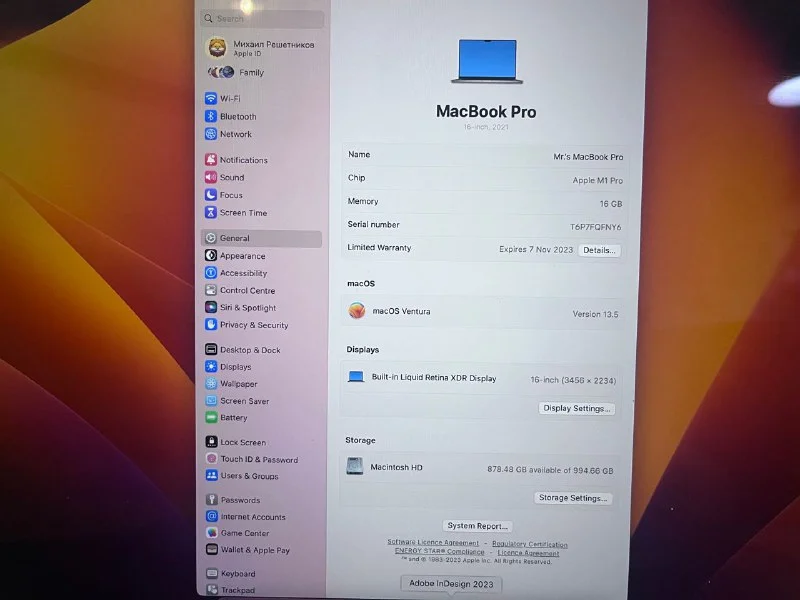 Macbook Pro 16 m1 pro 2021 1TB ssd Отличное состояние, ориг ру клавиатура, офф. гарантия до 7 ноября 2023 г. Лимассол 💶2200 евро
