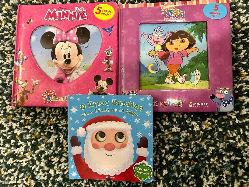 Детские Книги на греческом языке для самых маленьких, толстые страницы, подвижные элементы (глаза👀), яркие картинки, странички-пазлы для развития моторики