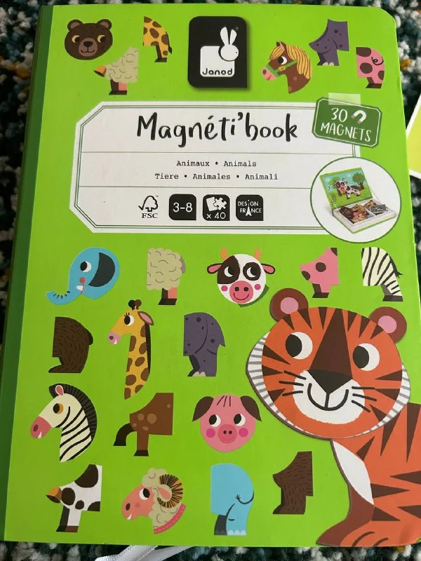 Магнитная книга с пазлами из животных для самых маленьких, к сожалению из 30 только 27 (поэтому справа на фото странные животные которые можно миксовать для потехи 😅)