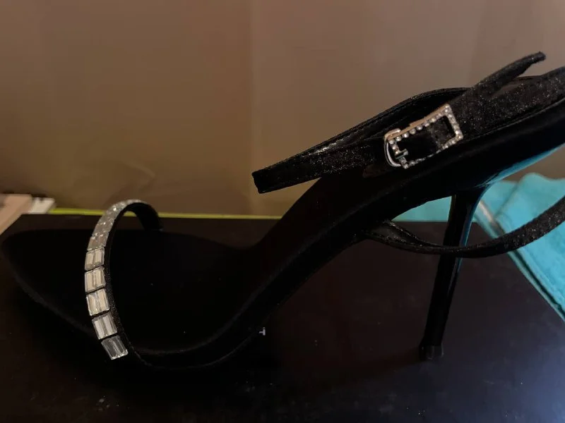 It still has the film on. Black glass. Metal legs, easy to clean under the table.