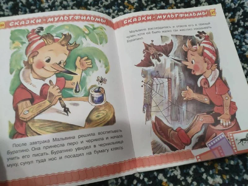 Книга "Приключения Буратино, или Золотой ключик" на русском языке с яркими красочными иллюстрациями