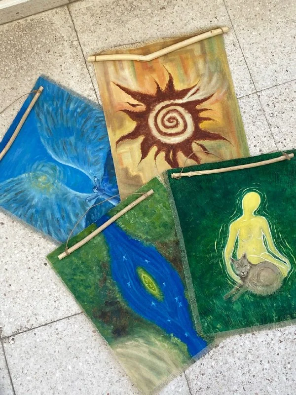 Панно из хлопка, написаны маслом, размер 30х40 , задекорированы дубом