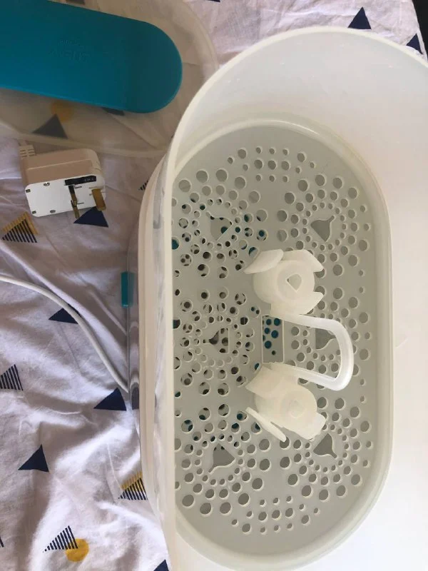 Продаю стерилизатор для бутылочек и сосок, ванночка складная, стульчики, барьер и почти целую упаковку памперсов(двойка, 3-6 kg). За все 30€