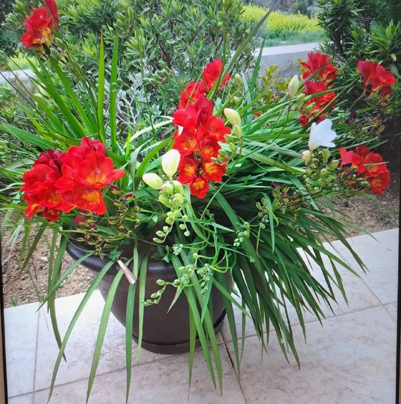 Цветы живые для сада и балкона. Нарциссы и фрезия. Цена 10, 12, 15 евро в зависимости от горшка и количества луковиц. Лимасол