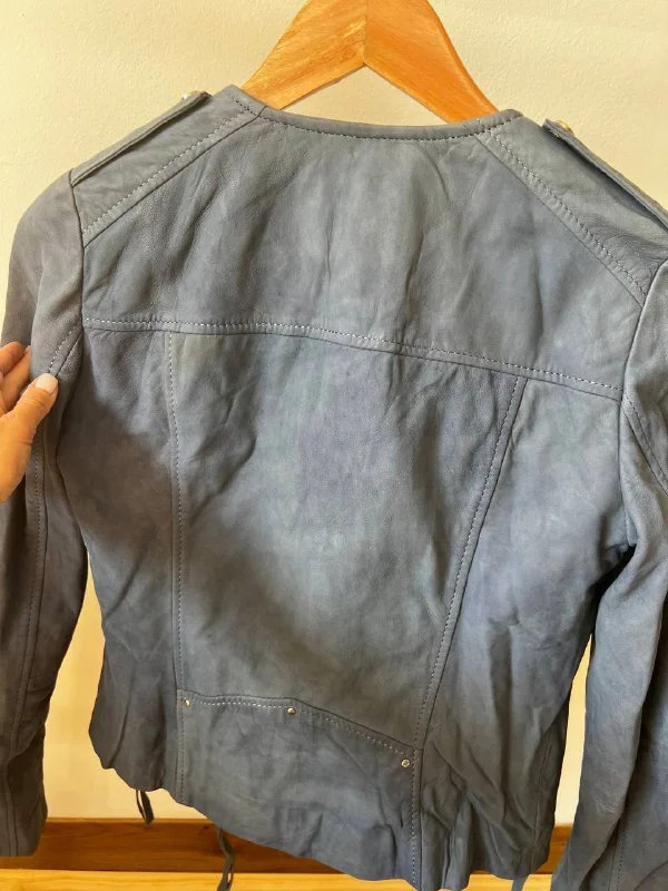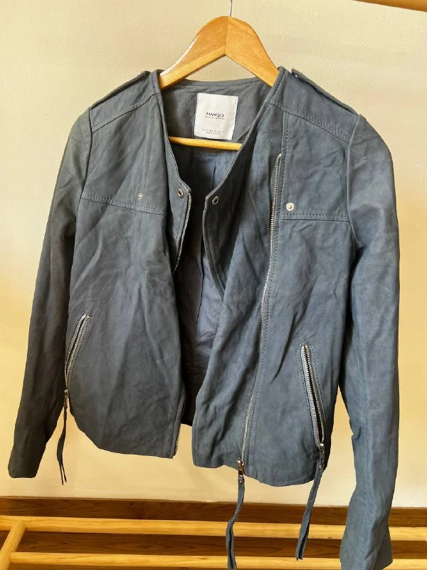 Кожаная куртка MANGO не ношеная, но есть дефект на спинке , фото прикрепляю. - 15 💶