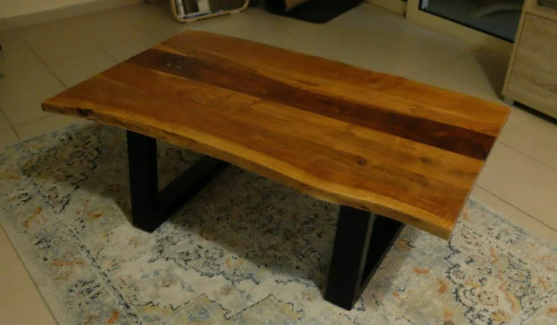 Очень красивый кофейный столик из цельного дерева, ножки металлические