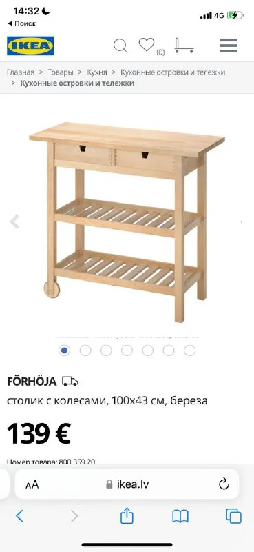Столик с колесами Икея