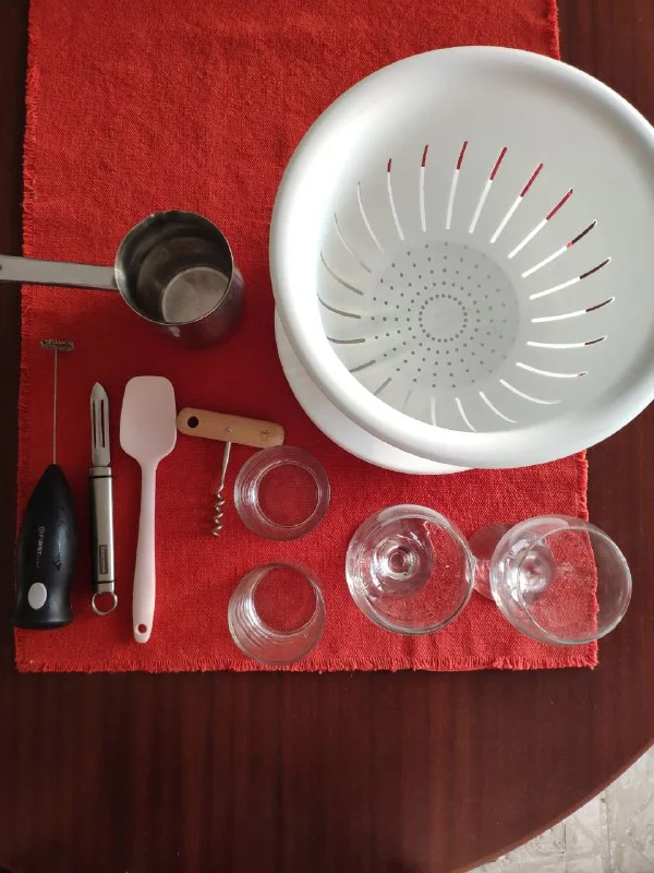 Набор для кухни: 4 тарелки Икеа, дуршлаг Икеа, 2 бокала, 2 стаканчика и др. 15 евро, Лимассол