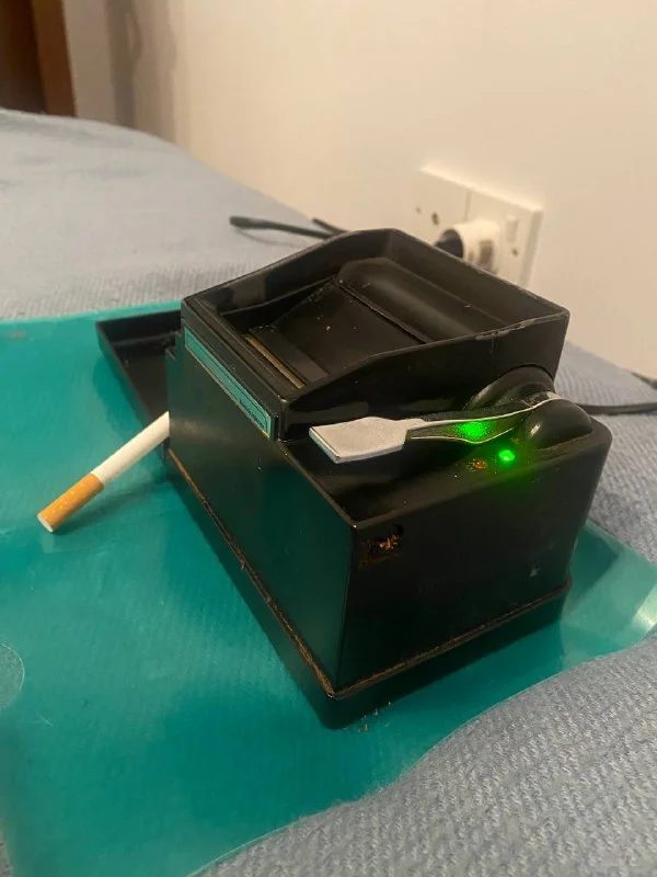 Машинка для изготовления сигарет. Всего нужно пару секунд и сигарета готова,очень удобно и быстро . Нужно только засыпать табак. В подарок 12 упаковок гильз . Цена 100 евро