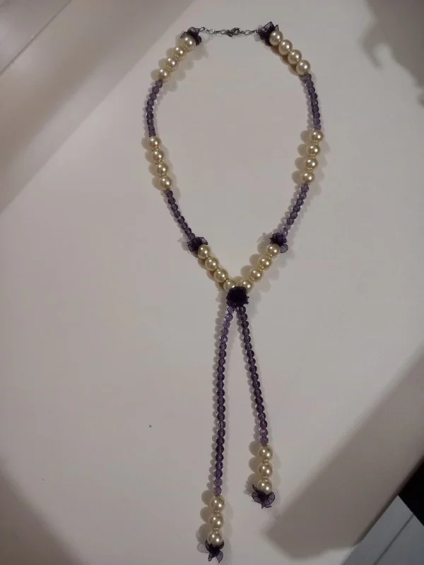 Красивое украшение жемчуг, аметист, застёжка из серебра. В идеальном состоянии. Отдам за 50€