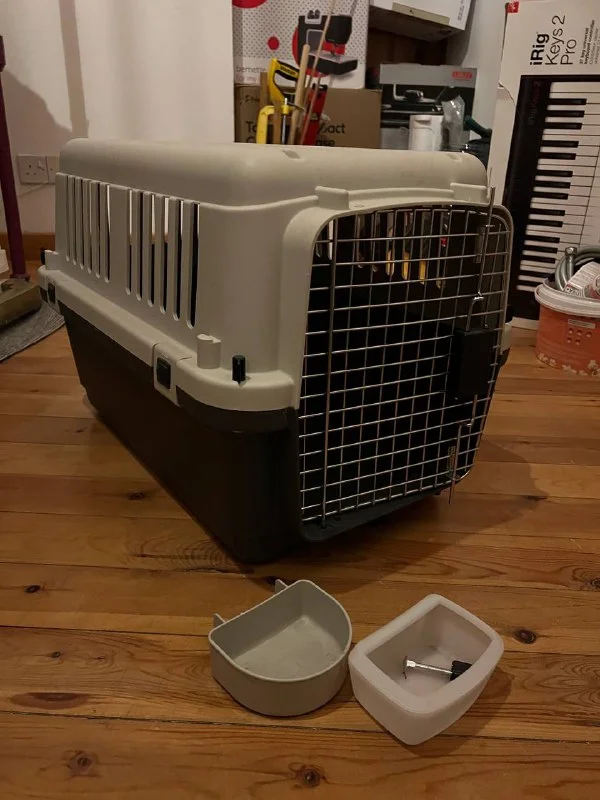 Переноска для кошек и мелких собак. Размер 60х40х40. Есть все болты и детали. Одна решетка чуть треснула, мы её припояли. Цена 30 евро
