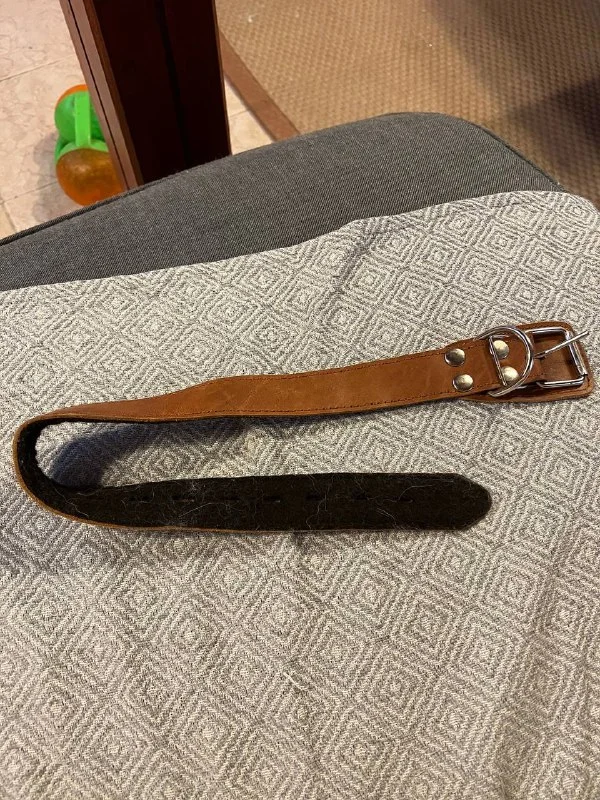 Кожаный ошейник для средней собаки и крупной собаки. Без заломов, не пользовались совсем. 5 евро