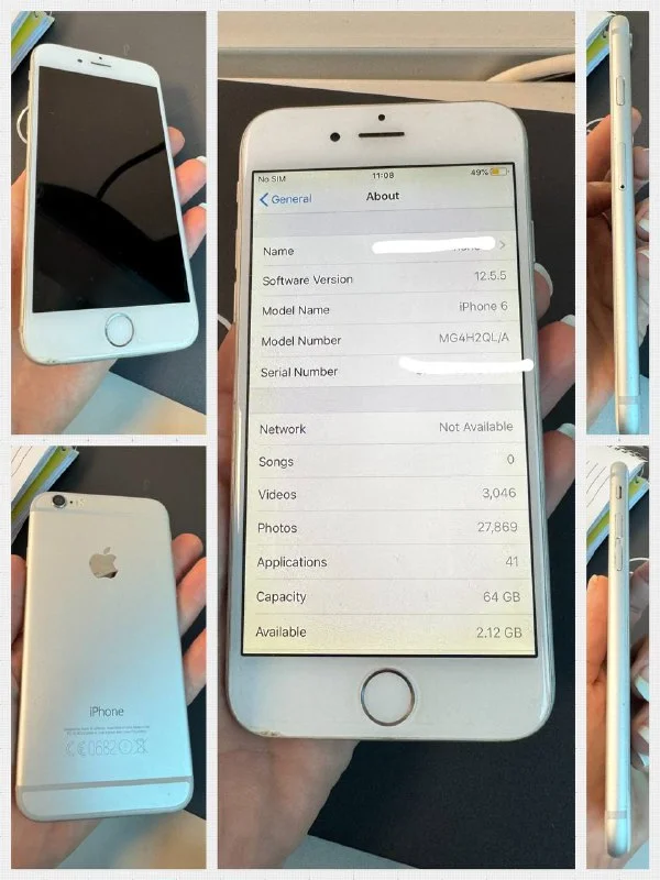 iPhone 6, 64gb, €100. Battery health 99% (заменяла в официальном аппл сторе в Лондоне, поэтому она и новенькая). Все кнопки работают. Корпус и экран в хорошем состоянии, только микроцарапины, всегда был в чехле и под пленкой, но имеется скол в нижнем левом углу. На работу не влияет , чисто косметика.