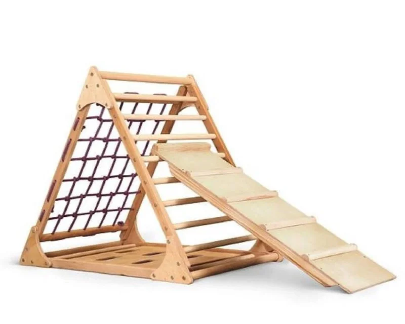 3. Треугольник Пиклера с веревочной лестницей и двусторонней горкой или спортивный уголок, толстый мат под них