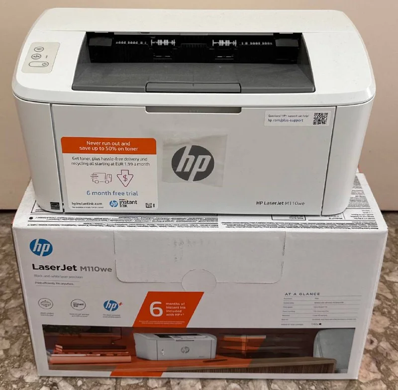 1) LaserJet M110we - ч/б лазерный принтер, напечатано несколько страниц, бесплатная подписка на 6мес HP+ Smart не активирована! - 100€ (торг! Возможна оплата в р.)