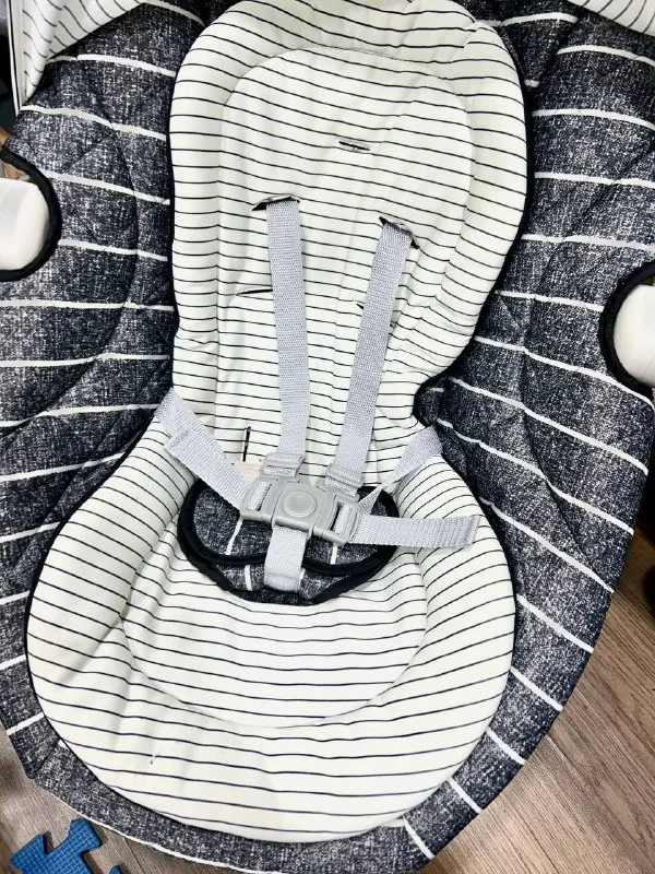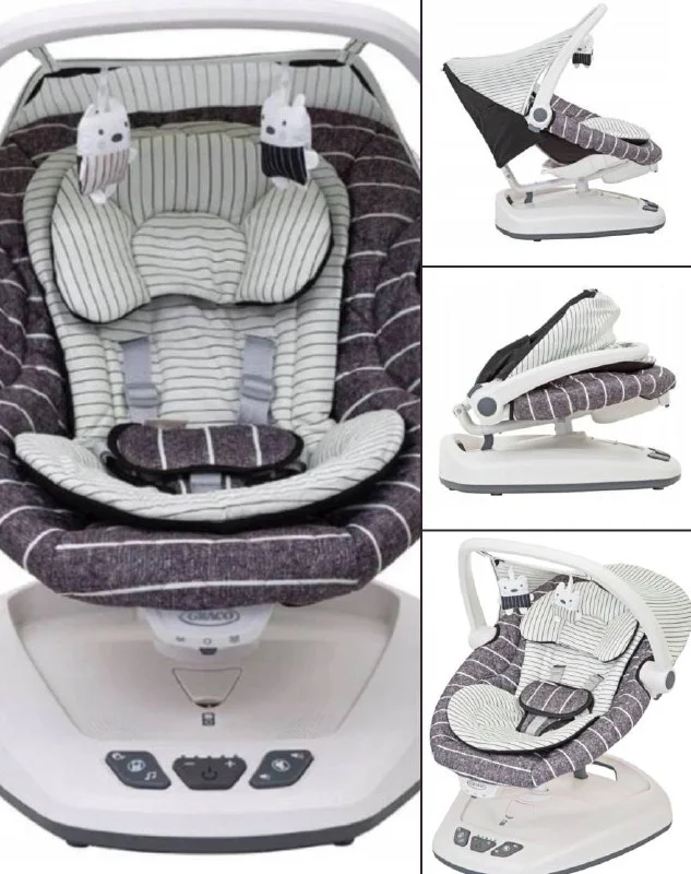 Детские качели Graco Move With Me могут использоваться с рождения малыша до 9 кг (примерно 10-12 месяцев), есть съемный вкладыш для новорожденных с подголовником. Сиденье имеет два уровня наклона, а также чехол, который легко снимается для стирки. 5 скоростей и 2 режима вибрации.
