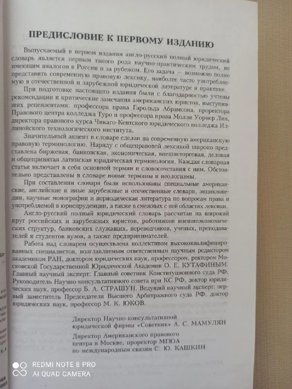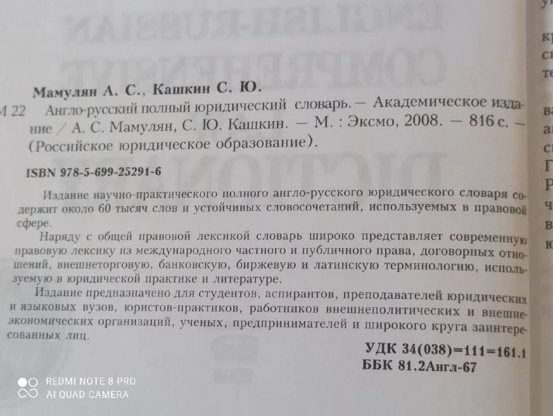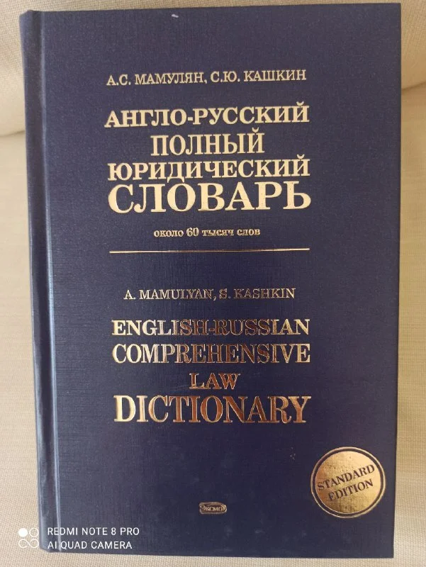 Совершенно новый англо- русский полный юридический словарь ( около 60 000 слов) . На фотографиях можете прочитать предназначение книги и её предисловие. Магазинный ценник на фотографии, продаю за 18€.