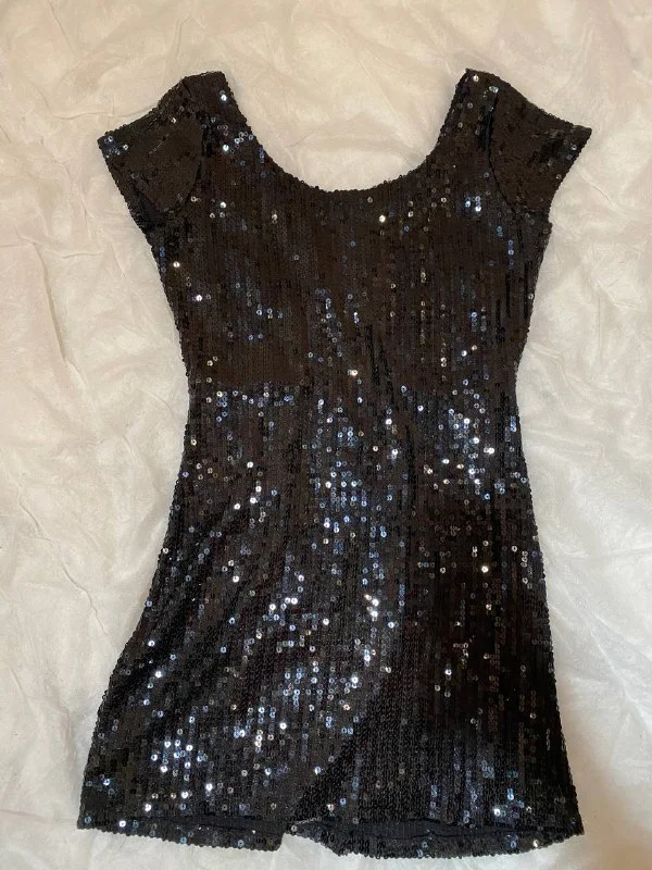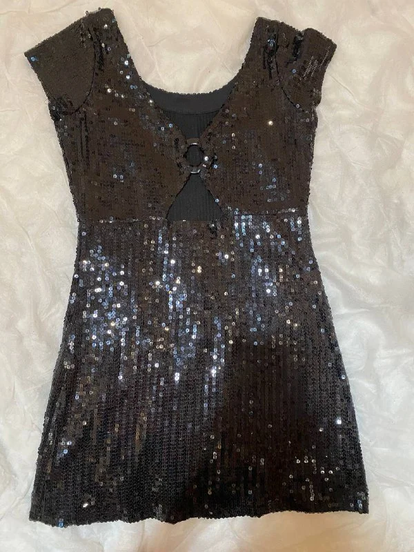 Фото 4-5 - черное платье короткое, в пайетках, не бу, размер s-m