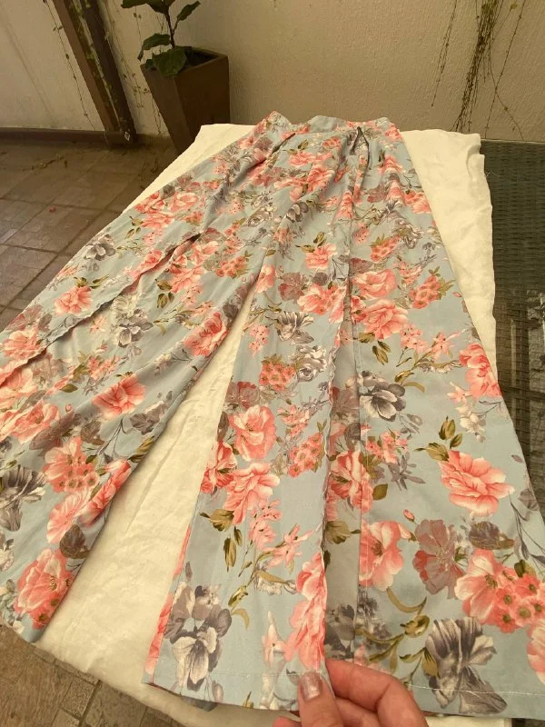 Брюки с цветочным принтом и разрезами впереди